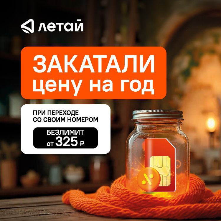 650₽/мес325 ₽/месАкция действует при переходе с сохранением номераПодробнее о тарифе -